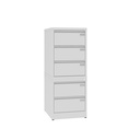 Body made of 1,0 mm thick steel, drawers made of 0,8-1,0 mm thick steel. Drawers on ball bearing slides with double extensions, protected against falling out, equipped with pull-out block. Central lock. 50 kg load capacity of drawers. 86% drawer extension.
